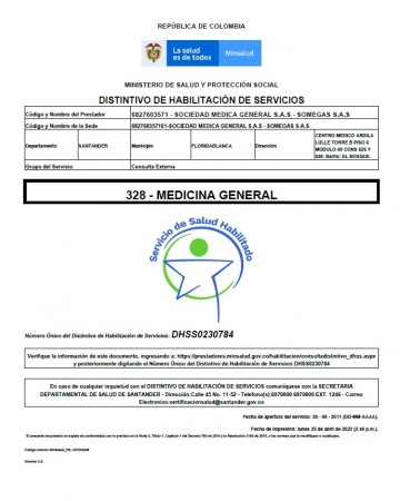 Cra. 24 No. 154-106 El Bosque Centro Médico Carlos Ardila Lülle Torre B Piso 6° Módulo 49 Cons. #628 Floridablanca - Santander